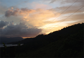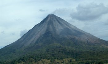 Both while we were on the hanging bridges walk and as we drove to a place to view the lava flow when the volcano belched, we could see wonderful views of the volcano. Unfortunately, by the time it was dark enough to have seen lava flowing, most of the cone was capped in cloud and there was nothing to see tonight. We drank a shot of coffee liquor to toast Arenal anyway. All the same, Arenal is one beautiful volcano.