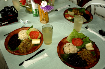 Next was our “home hosted meal.” We divided into two groups and were dropped off at two different houses. We were greeted by the mother and family and ate a home cooked meal - ours was rice and black beans, with chunks of chicken in a sauce, salad, and plantains in caramel sauce. It was a neat little house with pretty tile floors. We were lucky to have the 16-year old daughter present and she spoke fairly good English.