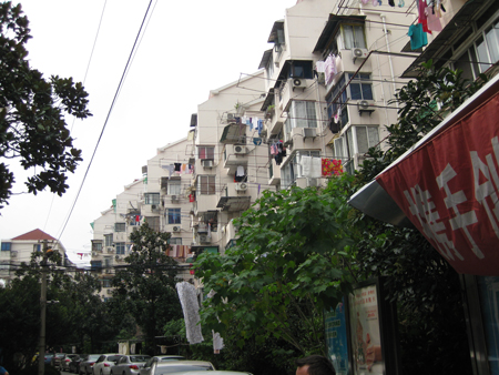 This morning we visited a neighborhood service center – a complete community within a set boundary and run for the benefit of the community. We sat drinking green tea while the madam (leader) of the Cao Yang Cultural House explained how the community works. The community was established in 1951 for the 95,000 people (mind-boggling numbers!), mostly factory workers, who lived and worked within the boundaries. There were also teachers, doctors, etc. There are kindergartens and middle schools, shops, two hospitals using both western and Chinese medicine (acupuncture and massage). There are senior apartments and nursing homes. 20,000 of the residents are retired and living on their government pensions.
