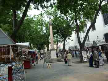 In the three pictures to the right and below the tile work represents the former location of the Danube River.