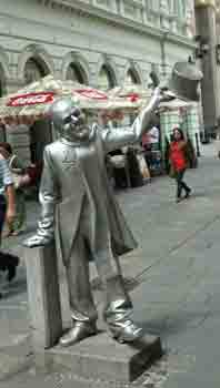 We will best remember Bratislava for its comical bronze statues: the man in the sewer looking up at the girls in mini-skirts; the man leaning on a bench wearing a Napoleon hat with his rear-end aimed at the French embassy; the paparazzi man with a camera; and the man greeting those entering a cafe/bar.
