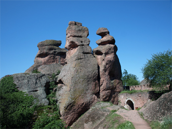 We arrived at Belogradchik and looked at the unique red sandstone and limestone rock formations. Wind and rain have sculpted the rocks into forms that resemble things like a schoolgirl with a backpack, a bear, a rabbit, an elephant, and Adam and Eve's first kiss. Many of the forms have legends assigned to them.