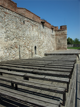 We hurried back to Vidin to take a brief look at the Baba Vida Fortress. It is the best-preserved medieval stone fortress in Bulgaria. We walked around the double wall with moat into an inner courtyard where the residential area was. We looked into the prison with walls marking days spent in there and a small chapel. We walked up onto the ramparts. Outside the castle was a rose garden. The rose is the symbol of Bulgaria and rose oil is an important export.