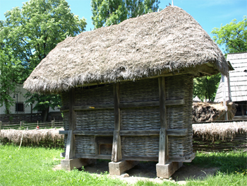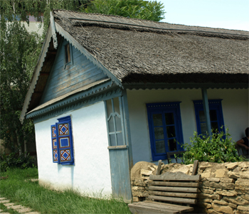Our tour included a visit to the Village Museum. It is an eight-acre park (one of many in Bucharest) around one of the seven city lakes. Seventy buildings from the 1700 to 1900's were moved here from all parts of Romania. The houses were all similar in design. The entry hall divided the parent’s bedroom from the kitchen where people sat and the children slept. The windmills, wooden churches, hay racks, wine presses, sleds, barns, etc. were all very functional and stoutly designed with hand carved decorations. The homesteads had elaborately carved fences and entry gates. Period textiles were displayed in many of the houses. It was a nice day and a relief to walk in the open air away from city cobblestones.