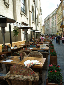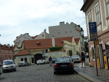 Gale at the narrowest street in Prague