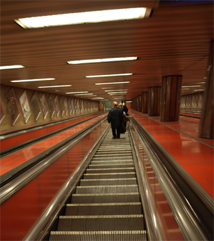 Down the subway escalator - the subway was very easy to use and provided an excellent way to get around the city