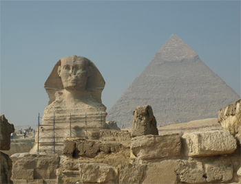 Great Sphinx of Giza with the Pyramid of Khafre |