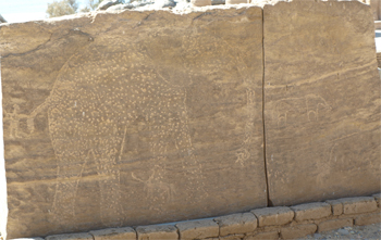 Parts of Nubian structures (most of mud-brick) could not be moved - they crumbled) but the sandstone pillars of Ramses II survived. The Nubian representations of Ramses II show him as a powerful figure with fat legs and a broad face. Some stones with depictions of two elephants and deer/gazelles are like petroglyphs and may be prehistoric.