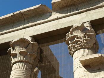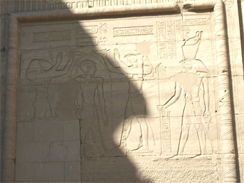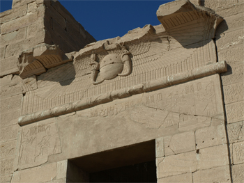 On the facade to this temple is the sun orb representing Ra, two cobras representing power, and the wings of the falcon, Horus, providing protection.