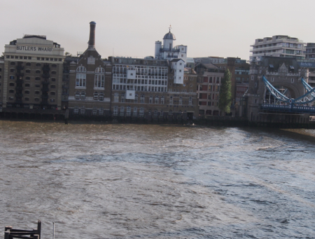 On a normal day the depth of the tide change in London is 24 feet. Even at ebb tide there is enough water depth for the riverboats. Pictured are high and low tide marks for two different locations.