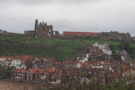 We drove up to the Whitby Abbey ruins. What remains is awesome. It was originally a Benedictine monastery for monks and nuns. In 635 St. Columba came to preach here. Henry VIII closed it. Two walls were destroyed by German battleship cannons in WWI. At one time, around 1060, it was an important place for pilgrimages. The Abbey must have been beautiful because what remains is grand.