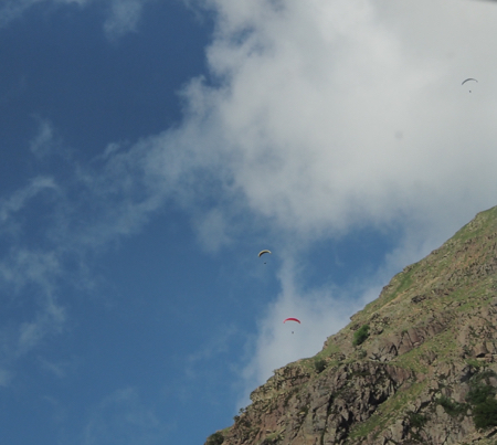We drove on beside the Therwell Reservoir, which supplies water to Birmingham, where we watched a bunch of BASE jumpers drifting in the thermals off a little hill cliff.
