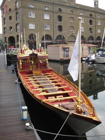 We detoured through the Katherine docks area behind our hotel to take pictures of the Gloriana - the Queen's Rowbarge (16 oarsmen and the Queen).