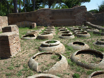 Stone pots, half buried in the ground, which held wine and olive oil and kept them cool.