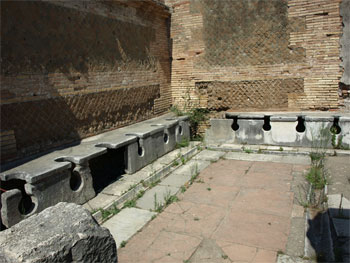 A public men's lavatory - marble bench seats were warmed by slaves for the masters in cold weather. |