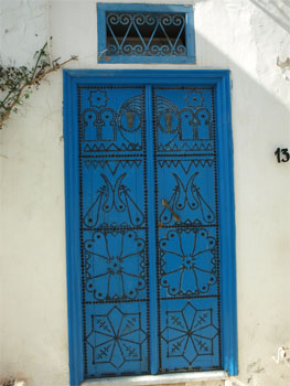 The last stop was at the village on a hillside, Sidi Bou Said. (Sidi is Tunisian for saint.) The village was white with blue shutters and doors and cobblestone streets/alleys. Of course, there were souvenir shops and cafes and aggressive hucksters but the back streets were interesting.