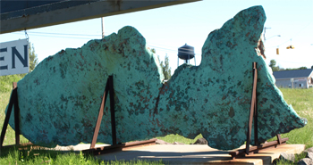 Our first stop was to look at a 17-ton hunk of "float copper" at the Quincy Steam Hoist and Mine. Float copper is an almost pure slab of copper that was created during eruptions many eons ago. It is found in pure chunks above and below the ground and was first used by native peoples because it did not have to be separated from rock to be used.