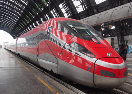 We came to Italy three days early in order to visit Milan and Urbino. This morning after our buffet breakfast we bought our tickets (44 € each) and rode the fast non-stop train to Milan. The train reached speeds of 300 km or 180 MPH. It was a smooth, fast ride.