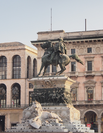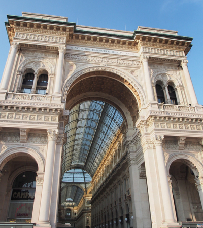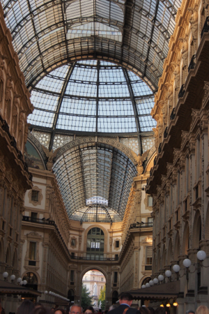 Across from the Cathedral is the glass and iron 19th c. vaulted Galleria Vittorio Emanuele II with the high-end fashion stores and cafes known as “Milan’s drawing room.” At the other end is the Piazza della Scala surrounded by the City Hall, the Bank of Italy, and the La Scala Opera House. In the square in front of the opera house is a statue of Leonardo with four of his students at the base. Milan is an interesting city and many of the streets were once canals.
