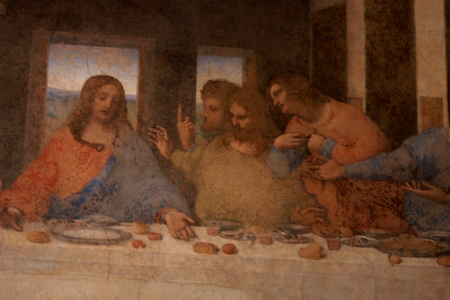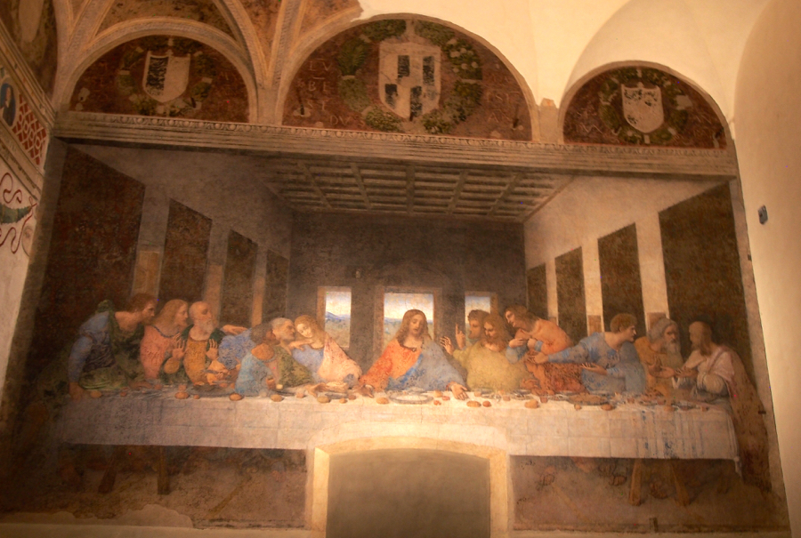 Back to the Metro stop and a ride to the center of Milan near the Church of Santa Maria delle Grazie to meet our 2:20 tour - the “Last Supper and the Best of Milan.” Taking a tour is just about the only way to be assured of getting tickets to see Leonardo da Vinci’s Last Supper that is painted on the wall of the refectory (dining hall) of the Dominican monastery at Santa Maria delle Grazie. We entered the museum through three climate-controlled rooms. Our guide talked about the painting while we were being dehumidified.