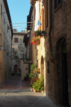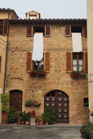 Street scene - Lovely flowers and sheets hanging out the windows!