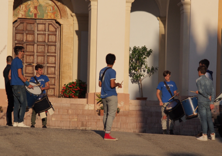 When we left the restaurant, two contradas were lined up with drum corps and everyone was in medieval dress. They marched into the grand square to a large crowd.