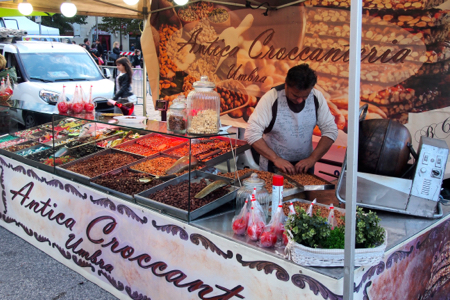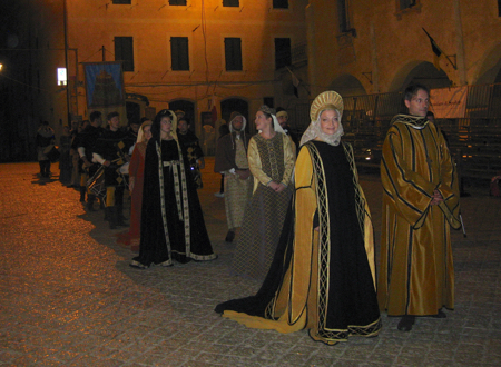 After another hour and a half ride on our bus, we arrived in Trevi, a town atop an impressive hill - at least the drive up was impressive! Today they held their version of a palio, but without horses, that included a Medieval Festival. When we arrived there were still food booths and craft tents and games for kids. The squares were full of people and the weather was great.