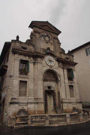 Fountain and clock in the Piazza Mercato