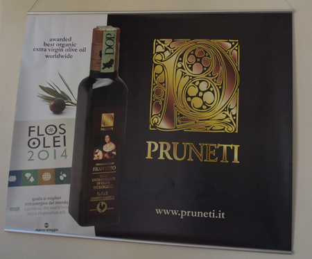Today's first stop was in San Polo at the Frantoio Pruneti olive oil factory. They grow their own olives, organic of course, and have 28,000 trees. The olives are hand picked and five hours later they are processed. The olive oil is cold pressed into a paste (15% of the olive). The machinery used for this extraction controls the temperature and keeps out oxygen. This allows all of the vitamins and antioxidants to remain in the oil. Olive oil is processed only in Oct. and Nov. The fleshy part of the olive is too acidic to be used for fertilizer but it can be used to make biofuel.