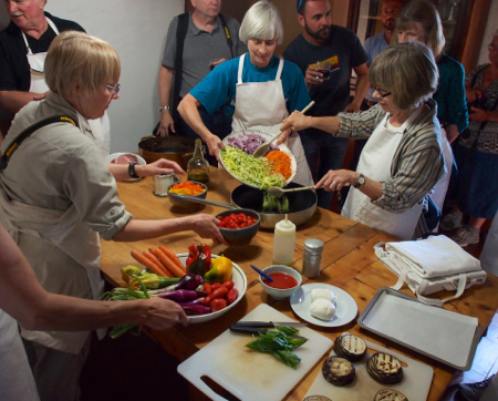 After the olive oil tasting experience, we were taken to Christina’s house for a cooking lesson and lunch. She had us make a vegetable sauce, pasta, pork loin with a rub, and mascarpone and strawberry dessert. We ate what we made and she gave us recipes. It was fun and was a delicious meal.
