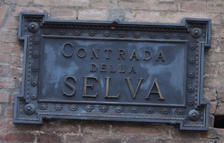 On the bus Tommaso showed us a very good video explaining the crazy horse race held in Siena called the Palio. So when we visited the Selva Contrada we had a vision of the pageantry involved. We walked by the Selva Stable and on to their museum of Palio outfits, winning banners (they last won the Aug. 16, 2015 race), their drums, helmets, etc. The museum is connected to their church where their assigned horse is brought in to the altar to be blessed by their priest on the day of the race.