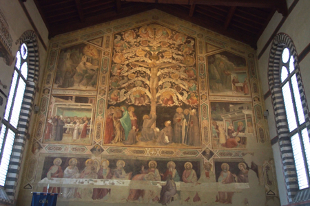 In Santa Croce is the Pazzi Chapel with architecture by Brunelleschi, and the tombs of many famous people: Michelangelo, Dante, Machiavelli, Galileo, Ghiberti, Rossini, and many others.