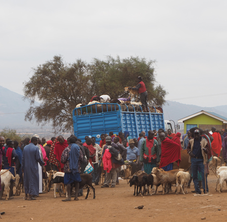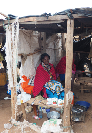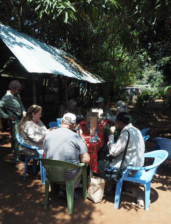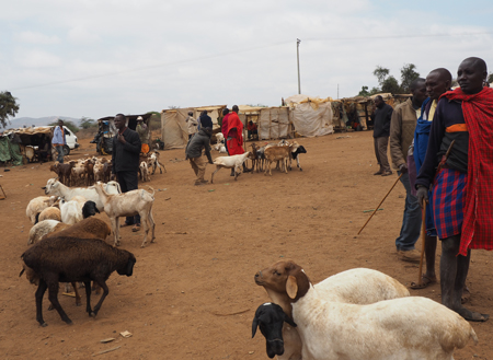 We also stopped and walked through a Maasai goat market. Some goats were bought by herders and others were going to the butchers. For $1.50 US the men could buy a lunch of rice and beans, a banana, and tea. Women set up “restaurants” in canvas or plastic lean-tos.