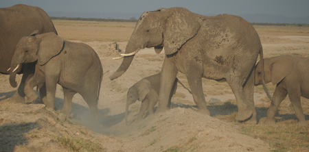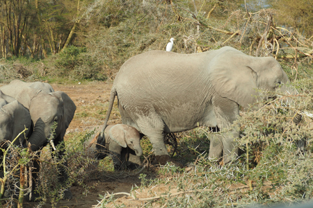 We saw lots of elephants including a family of three females with four young ones. We are amazed at how many species share the savannah at the same time. They are interspersed and don’t mind being around each other. We even got to see the tip of Mt. Kilimanjaro above the clouds.