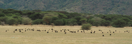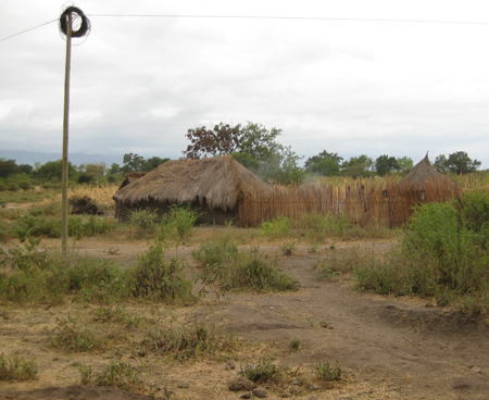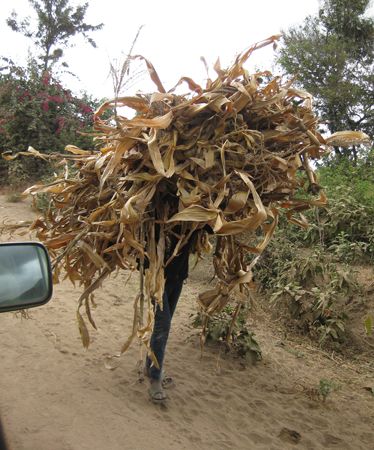 We drove along the floor of the Rift Valley where water is available and the tribal people have become farmers. There is water in streams, springs, lakes, and only a few feet underground. Farmers can plant 4 or 5 crops at one time in the same field and harvest them one after the other. They plant mostly beans, sunflowers, corn, and pigeon peas. Pigeon peas are exported to India where they are used to make “bread” and “cookies.” Rice can be grown here and sesame, which is used for seeds and oil and the stalks are made into fences. We also saw some fields of sugar cane.