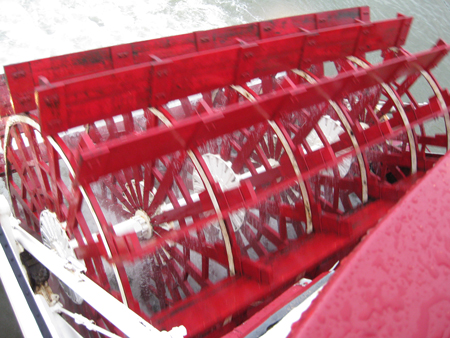 The boat was quite historic and we were invited to go below to see the working steam engine room that moves the paddle wheel as well as provides the steam for a calliope, which played as we were boarding. The buffet was plentiful but not great – fried chicken, canned green beans, mac and cheese, salads, etc. The boat was interesting, the meal and weather were not.