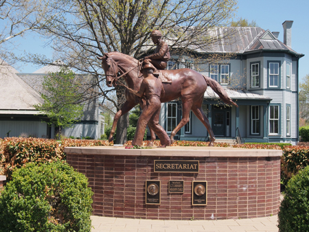 This morning we boarded our buses at 7:30 AM for the 1½ hour ride to Lexington. On the way we saw almost continuous horse farms. Most of the fences here are black, are rounded at the corners, and most have double fences. The rounded corners are because the thoroughbreds love to run and can turn corners before they run into a fence. The double fences – one around the paddock and another 10 or 15 feet outside it – surround paddocks that hold stallions. The stallions are feisty and competitive and would bite or kick another horse or a person if they were able to reach them.