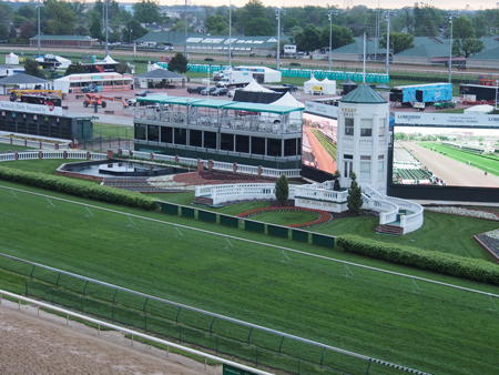 We had an excellent guide take our group on a 45 minute Historic Walking Tour of Churchill Downs. Most impressive was his description of the number of people and amount of money that will be at the Derby. Food, beverages, and wagers must be paid in CASH! With 150,000 people expected (actually there were 165,000) to be in attendance plus all the millionaires (movie stars, athletes, corporate officers, etc.) there will be a lot of green backs at Churchill Downs. Our guide gave us an idea of what Saturday will be like. It was nice to see the areas without the crowds and we have an idea of where we might want to wander to see the jockeys and horses up close. We also understand there will be huge lines and long waits to bet, buy beer, or use a restroom!