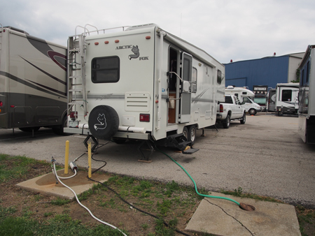 In the morning (April 27) we emptied our waste tanks and filled the freshwater tank in preparation for our stay in the Louisville Expo Center parking lot “L.” We arrived a day early for our Derby Rally with Fantasy RV tours. We were lucky to have our choice of parking spaces and got one that gave us water, electricity, and sewer hook-ups! Now we don’t have to conserve water, which is very convenient!