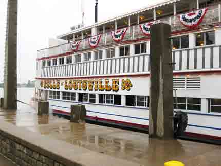 At 4 PM we met the group in the Expo Center for our orientation meeting before being bused to the Ohio River for a boat ride and buffet dinner on the 100 year-old stern wheel steam boat, the Belle of Louisville. It was too bad it rained for our river cruise. Instead of a two-hour cruise we were back at the dock after one hour because the rainstorm was getting severe.