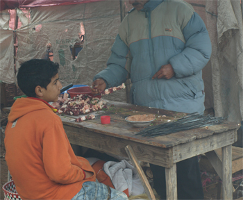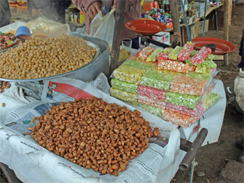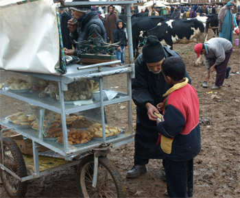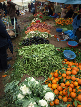 At the Arab village of Attouia we stopped to visit a weekly market. Animals were for sale and butchers were cutting meat. There were spices and produce and clothes and cooked food. There were even several tents where barbers were trimming hair. The interaction of the people living their normal lives is interesting to observe.