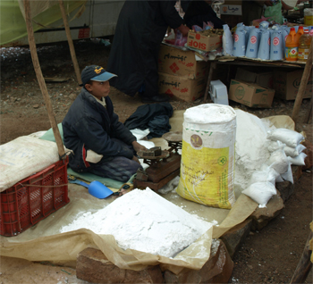 We have stopped at several gas stations along our drives to stretch our legs and use the variety of bathrooms common to Morocco. Half of them are squat toilets and the ones with seats (however, usually the seat is missing) may have toilet paper. For this luxury we pay 1 dirham, about 17 cents. That may buy 4 sheets of TP so we all carry our own. They do clean the stalls. If there is running water to wash our hands, they may provide a community towel for drying - we carry a bandana for that purpose. Some of us are now used to the expected conditions. The gas stations are Ziz, Oilybia, Afriquia, Petram (owned by Esso) and Shell with a few other odd ones. The price of gasoline is nationally set. |