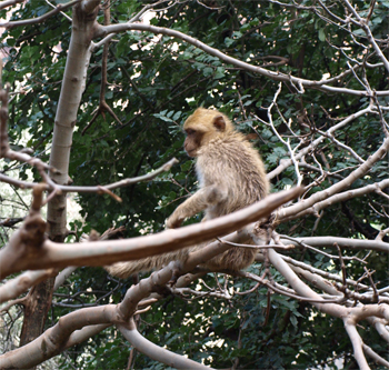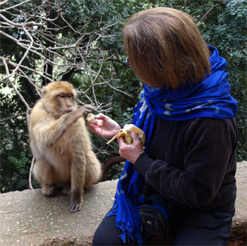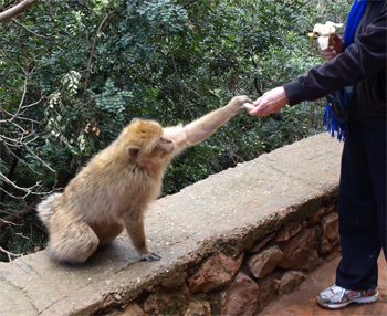Between the entry to the national forest and the first viewpoint we saw about a dozen Barbary apes (actually macaques). These little fellows are endangered. They were playful and loved Barbara's banana. We were happy to actually see some of these traditional Moroccan creatures.