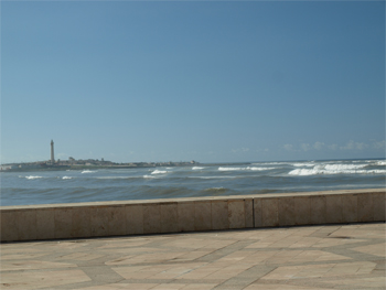 We walked a short way along the ocean looking at the crashing waves. The lighthouse is still in use. It was significant in WWII. Links: http://en.wikipedia.org/wiki/Hassan_II_Mosque http://www.sacred-destinations.com/morocco/casablanca-hassan-ii-mosque