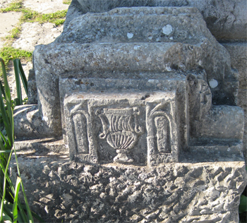As they uncovered various houses they found courtyards with fountains and baths (in the patricians side) and 15 mosaic floors. One had designs of Diana, the huntress, with Pegasus and nymphs. Another was a design of Helios. These were in dining rooms and the mosaics indicated where the chaises were put so the Romans could lie down to eat. Another tile floor had the portraits of the four seasons, another the twelve labors of Hercules, another bedroom had Bacchus and a drunken man, another floor had an acrobat riding a donkey backwards. The layout of the city also contains the basilica with several of the walls and columns in place, the auditorium and the temple to Jupiter with its 211 AD sacrificial alter. The sun dial was typical Roman. I really enjoyed Volubilis! Links: http://en.wikipedia.org/wiki/Volubilis http://www.kuhmann.com/poetry/Volubilis.htm
