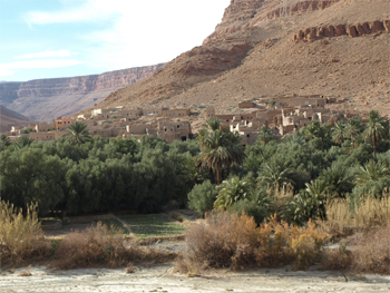We headed out toward the Sahara in 4x4 Toyota jeeps and made several stops to learn about the people of this part of Morocco. The first stop was at Pigeon du Sable, a village of dark skinned Sudanese. This village was once a caravansary for traders of salt from the north and for gold from the south.