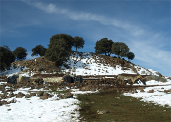 We left Fes behind and entered the Middle Atlas Mountains. The land became very rocky with volcanic rock. The area is referred to as the "water tower" because it provides water for Fes and Meknes.