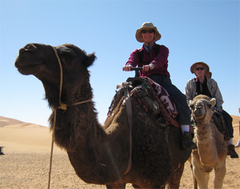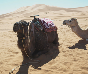 We rode camels to lunch in a tent in the desert. The camel ride (for 45 minutes) was fun and appropriate to the scenery of sand dunes. Only male camels five years and older are ridden; females are used for breeding. Wool is gathered from camels in their first 5 years and after that, it is called hair and is coarser.