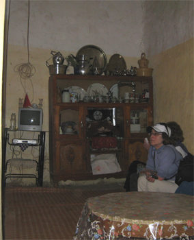 At Rissani we visited a poor woman's house. OAT is giving her money to keep her 15-year old daughter in school instead of sending her off to Casablanca or Rabat to be someone's maid. She rides a free bicycle to school and wants to go to Meknes to a university to become a teacher. The house has a living area, two small rooms and a tiny kitchen in an attached shed. They rent it for $8 a month.