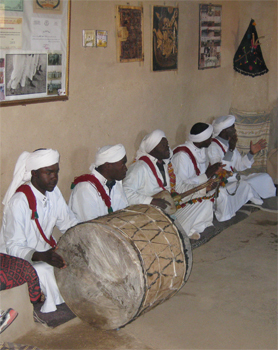 We entered an adobe structure and listened to a Sudanese music and dance performance. The instruments were drums, one guitar-like thing and Sudanese castanets. It was a lot of chanting and repetitive sounds and steps.